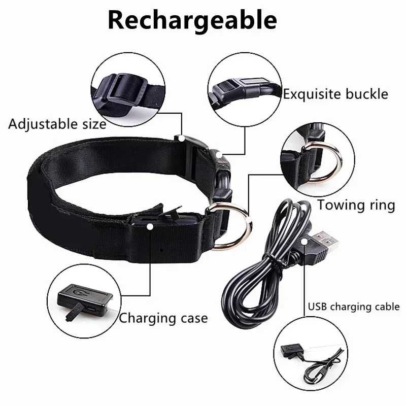 Dog Collar With LED Glowing Adjustable Flashing Rechargea Luminous Collar Night Anti-Lost Dog Light Harness for Small Dog